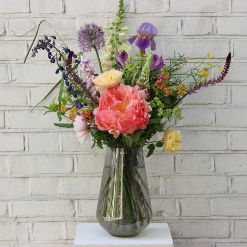 We work with British-grown flowers wherever possible, alongside carefully sourced stems that reflect the time of year — from spring tulips and narcissi to autumn dahlias and late-summer grasses. Every arrangement is made to order by our in-house florists, balancing structure with looseness and a sense of quiet abundance.